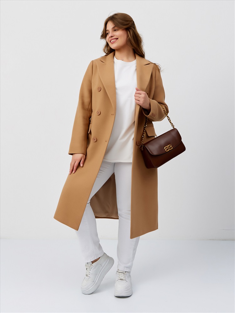 Материал: кашемир Цвет: кэмел Состав: 70% полиэстер, 30% шерсть Размер на модели: 50 Описание: Пальто женское демисезонное. Пальто прямого силуэта с поясом Воротник английский, отложной с лацканами Рукав -втачной со шлицей(складкой) по локтевому шву. На шлице 3 пуговицы. Застёжка -двубортная, два ряда пуговиц. Длина рукава - 63 см. Длина изделия по спинке 110 см. Комментарии к товару