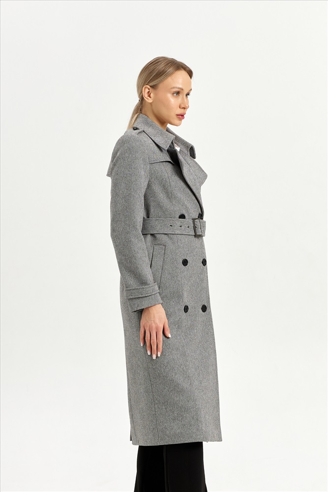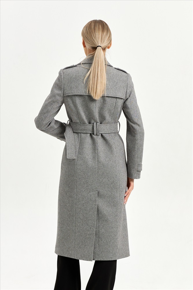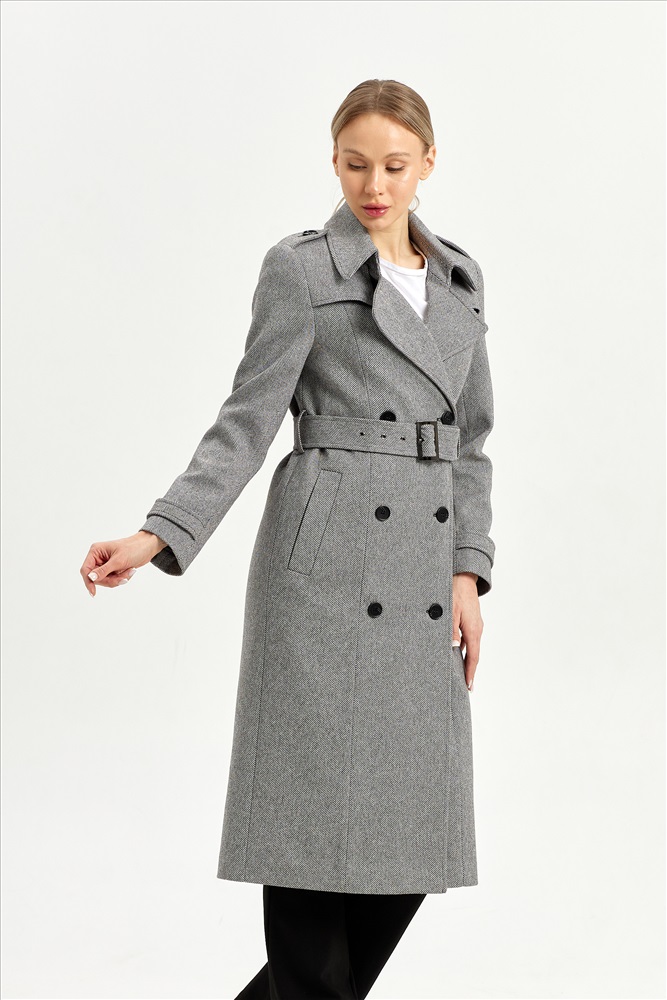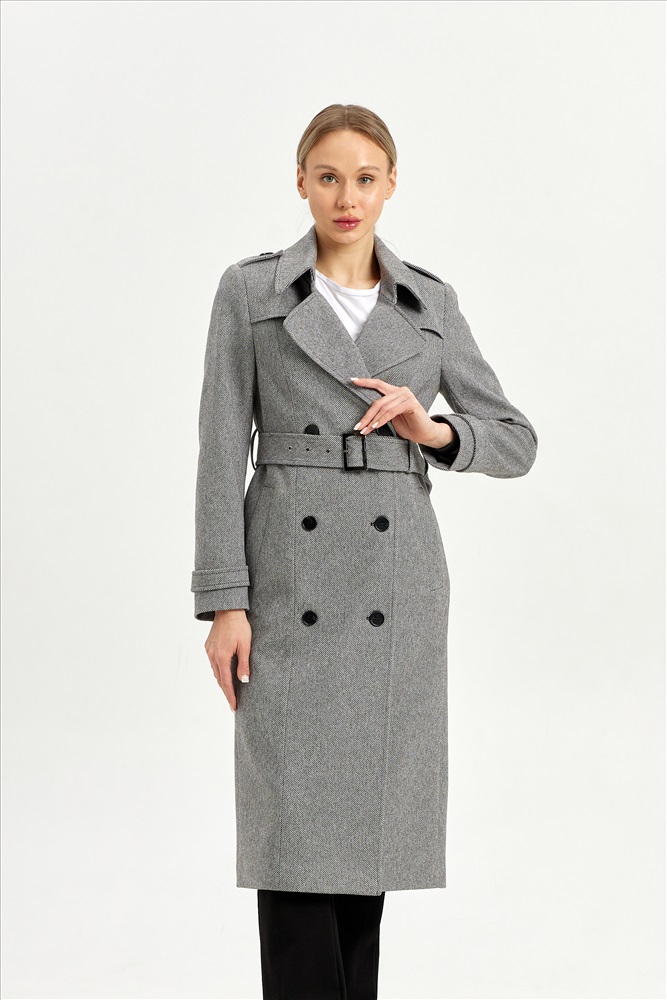 Модель: 25797 Материал: рубчик Цвет: серый/ёлочка Состав: 70% шерсть, 30% полиэстер Параметры модели: 86-62-92, 176 Размер на модели: 42