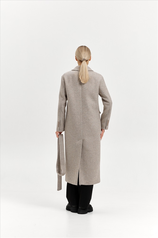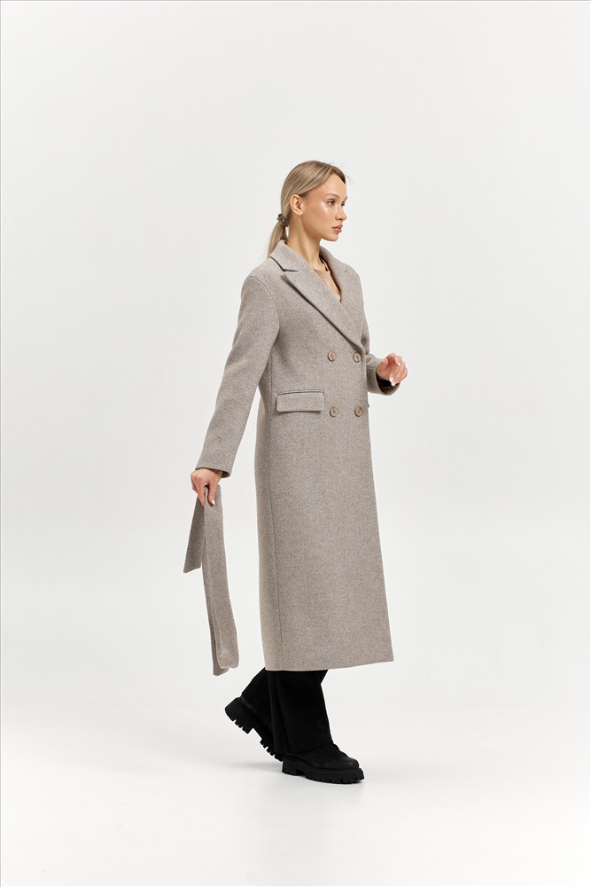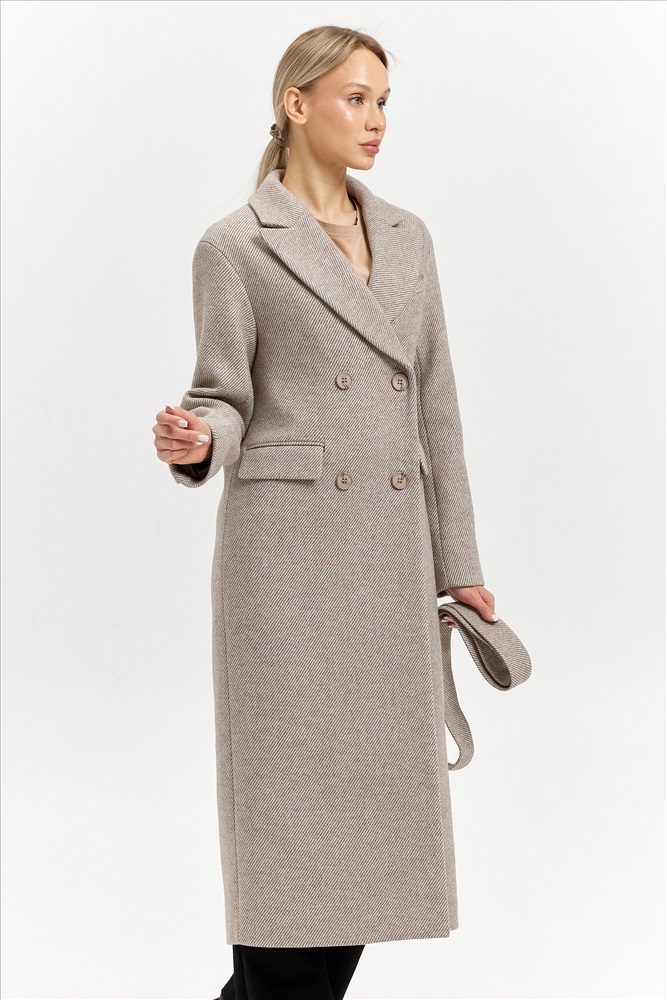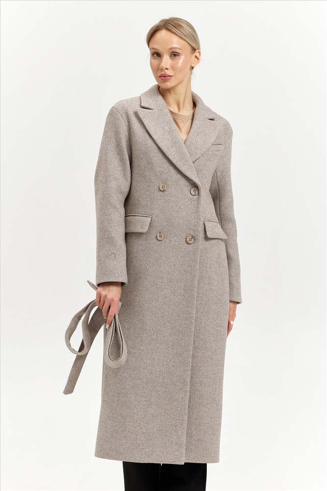 Материал: рубчик Цвет: бежевый/диагональ Описание: Пальто женское демисезонное. Пальто прямого силуэта, свободное - оверсайз. Воротник - отложный с лацканами. Рукав -втачной, со спущенным плечом. На локтевом шве внизу - шлица-складка с 4мя пуговицами. Застёжка -двубортная, два ряда пуговиц 4шт + 1 полудержатель. Спинка - со средним швом и шлицей. Длина рукава от горловины - 75 см Длина изделия по спинке - 126 см Комментарии к товару