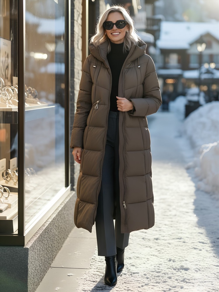 Изготовлено из высококачественных мембранных материалов и 100% полиэстера, оно обладает водонепроницаемостью до 7000 мм, что обеспечивает надежную защиту от дождя и снега. Наполнитель из синтепона гарантирует тепло при температуре от 0° до -25°C, а плотность утеплителя 240 г/кв.м делает его идеальным для зимних прогулок и активного отдыха. Стильный удлиненный крой ниже колена и свободный покрой делают это пальто универсальным для любого образа — от офисного до повседневного. Не съемный капюшон с фиксатором и стойка воротника защищают от ветра, а внутренние карманы с застежками обеспечивают удобство в использовании. Это пальто доступно в элегантных цветах: темно-сером, черном, светло-коричневом и коричневом, что позволяет легко комбинировать его с различной одеждой. Среди особенностей модели — быстросохнущий, водоотталкивающий и гипоаллергенный материал, а также дышащая фактура, что гарантирует максимальный комфорт в носке. Декоративные элементы, такие как стеганая фактура, манжеты и разрезы, придают изделию стильный вид. Не упустите возможность стать обладательницей этого зимнего пальто с капюшоном! Оно обеспечит вам тепло и защиту в любую погоду, позволяя вам оставаться в тренде. Закажите сейчас и наслаждайтесь качеством и комфортом в холодные дни! Комментарии к товару
