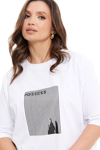 Джемпер женский из хлопкового трикотажного полотна для повседневной носки. Джемпер прямого силуэта. Перед имеет дизайнерскую аппликацию-печать в виде лаконичных букв. В боковых швах есть небольшие разрезы. Горловина чуть расширена, обработана притачной тесьмой. Рукава реглан, длиной чуть ниже локтя. Стильный джемпер белого оттенка станет вашим фаворитом среди вашего гардероба, за счет ее уникального дизайна вы определенно будете ловить на себе восхищенные взгляды прохожих. Данный джемпер будет красиво сидеть на вашей фигуре и радовать ваш глаз.