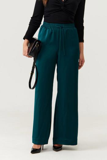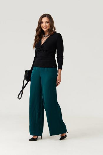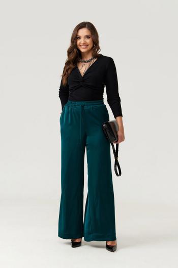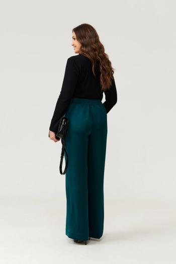 Брюки женские прямые из струящейся атласной ткани. Верхний срез брюк обработан притачным поясом, Пояс на резинке, по переду имеется отрезная прямая часть. В пояс вставлены завязки, за счет чего вы сможете регулировать облегание в области талии. На концах шнурков металлические наконечники. В брюках в боковом шве имеются потайные боковые карманы, что очень удобно. Брюки для повседневной носки либо для торжественных случаев. Модные и очень практичные брюки в классическом чёрном цвете станут базовой вещью в вашем гардеробе.