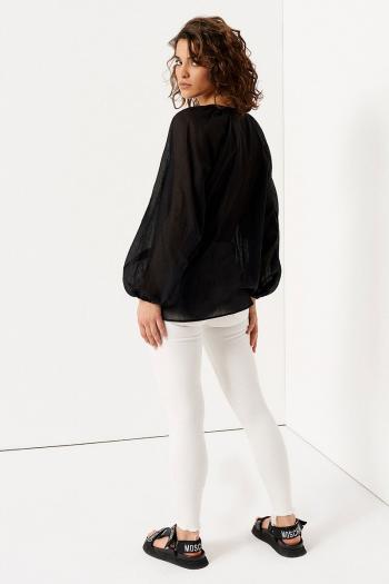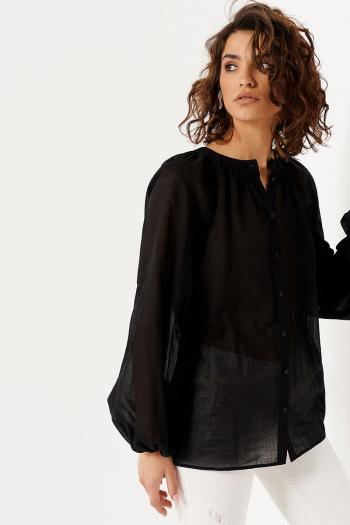 Прозрачная блузка из натуральной хлопковой ткани обеспечит вам чарующие повседневные и вечерние образы. Она дарит максимальный комфорт для тела в жаркие дни и позволяет выглядеть элегантно в любой ситуации. Нарядная женская блуза безупречно смотрится в дуэте с юбкой, брюками любого фасона, джинсами. Удлиненная блузка без воротника скроена в прямом силуэте, с застежкой на петли-пуговицы по центральной планке. Длинные рукава свободного кроя аккуратно собраны внизу на застегивающиеся узкие манжеты. Линия плеча спущена. Материал 100% хлопок, он легкий, мягкий, хорошо пропускает воздух. Вы можете заказать модную блузку лето 2023 в стандартных и больших размерах 42-52.