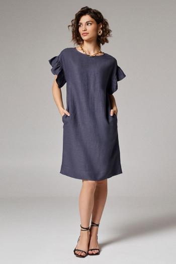 Платье женское из льняной ткани для повседневной носки. Платье прямое без подкладки с прорезными карманами в боковых швах. Горловина круглая, рукав короткий оформлен сборкой.