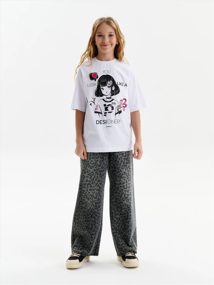 Стильная и удобная белая футболка для девочки умеренного объема. Выполнена из мягкого трикотажа, хорошо тянется, дышит и комфортно сидит весь день. На груди — модный принт с яркими акцентами. Перевод: Ты выглядишь как дизайнер Футболка отлично сочетается с джинсами, юбками и шортами. Подойдёт для школы, прогулок, мероприятий и просто хорошего настроения. Не забывайте о выборе правильного размера. Используйте таблицу размеров на фотографии, чтобы выбрать подходящий вариант. Обратите внимание, что цвет товара на экране вашего устройства может отличаться от реального.