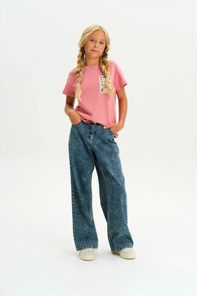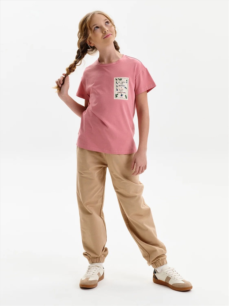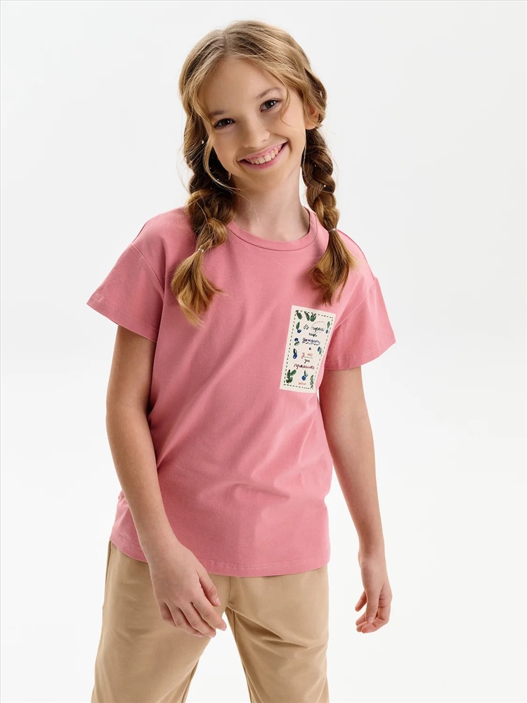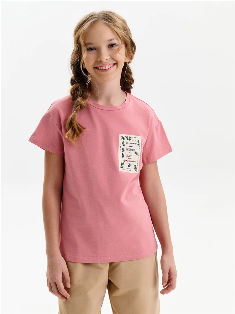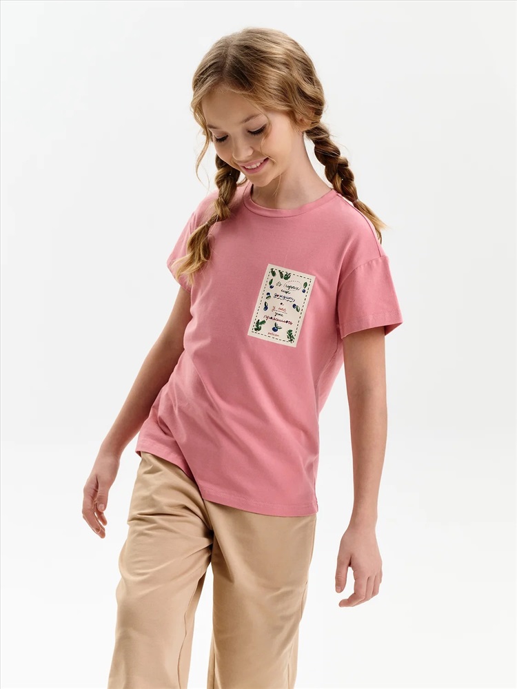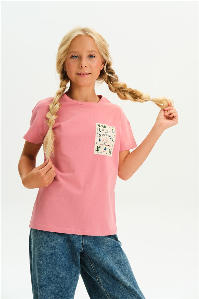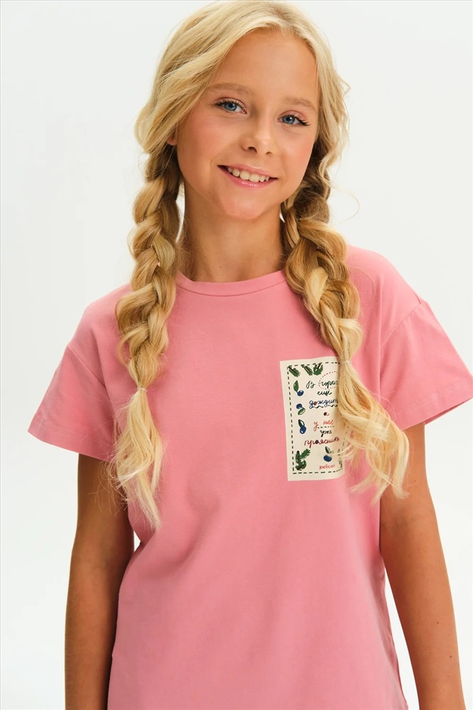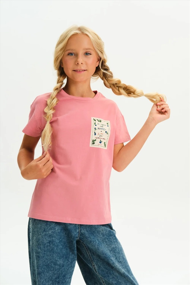 Футболка для девочки из 100% хлопка — с принтом-этикеткой в стиле «деревенское лето» Удобная и дышащая футболка из натурального хлопка — отличный выбор. Мягкий трикотаж приятен к телу, не раздражает кожу и хорошо держит форму после стирки. Модель однотонная, с лаконичным силуэтом, комфортно сидит и легко сочетается с любыми элементами гардероба: шортами, юбками, сарафанами и джинсами. Изюминка футболки — небольшой принт в виде текстовой этикетки с атмосферной фразой: В горах ещё дожди, а у нас ещё прояснилось — тёплое настроение и нотка уюта в каждом слове. Идеальный вариант для тех, кто любит простой и стильный деревенский (cottagecore) образ, вдохновлённый природой и спокойствием. Не забывайте о выборе правильного размера. Используйте таблицу размеров на фотографии, чтобы выбрать подходящий вариант. Обратите внимание, что цвет товара на экране вашего устройства может отличаться от реального.
