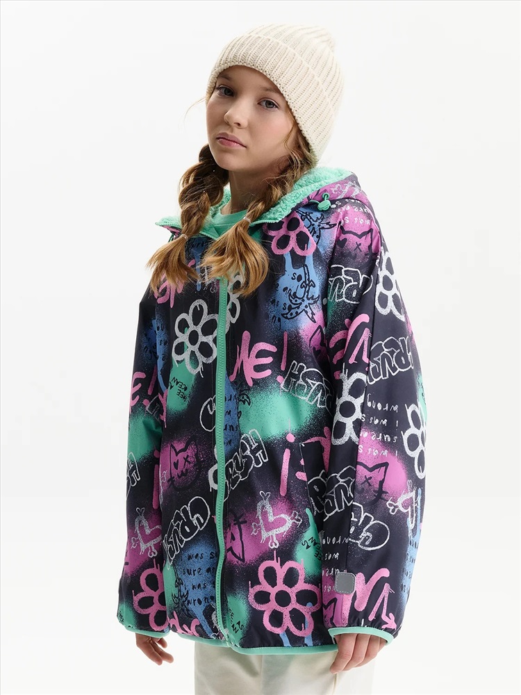 Российский размер: 98 Рост: 98 Возраст: 3 Обхват груди: 52 Обхват талии: 48 Обхват бедер: 57 Артикул поставщика: GZIM3389/1 Состав: материал верха1 100%полиэстер+мембрана, материал верха2 100%полиэстер Сезон: Осень, Весна Год: 2026 Демисезонная куртка для девочки Pelican — универсальная модель для прохладной погоды весной и осенью, сочетающая комфорт, функциональность и актуальный дизайн. Куртка выполнена в двустороннем формате, что позволяет носить её на любую сторону и легко менять образ в зависимости от настроения и цветовой гаммы. Внешняя сторона изготовлена из практичной курточной ткани, устойчива к ветру и повседневным нагрузкам. Внутренняя сторона выполнена из мягкого бербера — уютного и тёплого материала, который по тактильным ощущениям воспринимается как плюшевая куртка. Благодаря этому модель часто выбирают как меховую куртку для девочки на демисезон, без утяжеления и перегрева. Куртка для девочки имеет современный свободный крой оверсайз и укороченную длину до подъягодичной складки. Покрой рукава реглан формирует мягкую линию плеча, а объёмный верх рукава с заужением к низу обеспечивает свободу движений. Низ изделия и рукава окантованы эластичным пайпингом и слегка собраны, что помогает защититься от ветра. Модель оснащена центральной застёжкой на молнии с передвижным пуллером, который легко переворачивается на обе стороны. Несъёмный капюшон с забралом регулируется эластичным шнуром с фиксаторами. На переде расположены удобные карманы с листочкой без молнии. На стороне из бербера предусмотрен дополнительный вертикальный карман на молнии с тканевыми ограничителями. По низу рукавов со стороны основной ткани размещены светоотражающие нашивки, повышающие заметность ребёнка в тёмное время суток. Куртка рассчитана на температурный режим от +5°C до +15°C, подходит для прогулок, школы и активного отдыха. Комментарии к товару