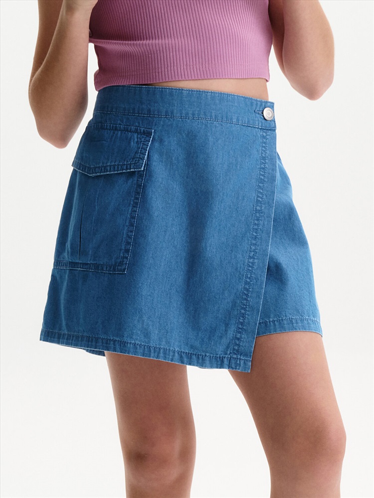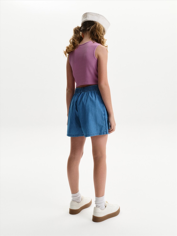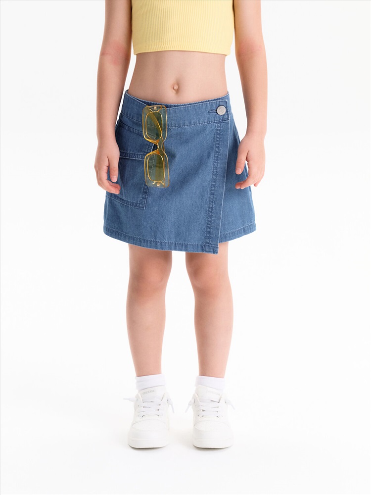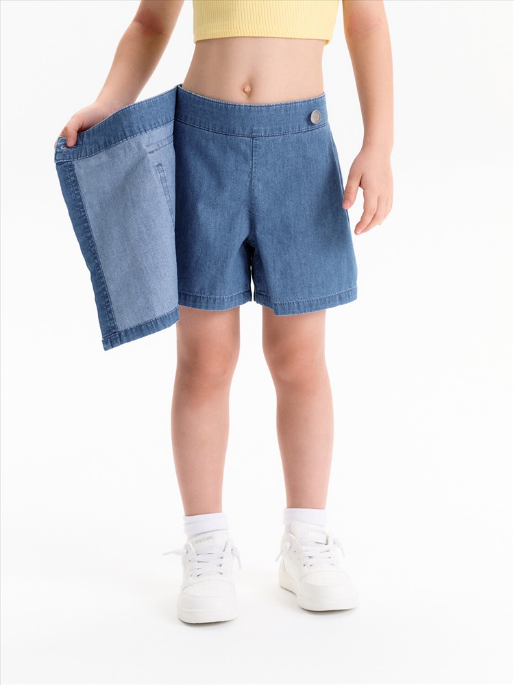 Юбка-шорты из тонкой джинсы Pelican - это стильное и практичное решение для летнего гардероба юной модницы. Модель выполнена из легкой, дышащей джинсовой ткани, которая обеспечит комфорт в жаркую погоду. Шорты с запахом, имитирующим юбку, выглядят очень женственно и оригинально. На передней отлетной части расположен отрезной пояс, фиксирующийся на пуговицу, а на правой половине - накладной карман. По спинке пояс на резинке, что обеспечивает легкость при надевании. Юбка-шорты Pelican - универсальный вариант для повседневной носки, занятий спортом или отдыха в лагере. Тренд 2025 года, эта модель станет любимой вещью в гардеробе любой девочки.
