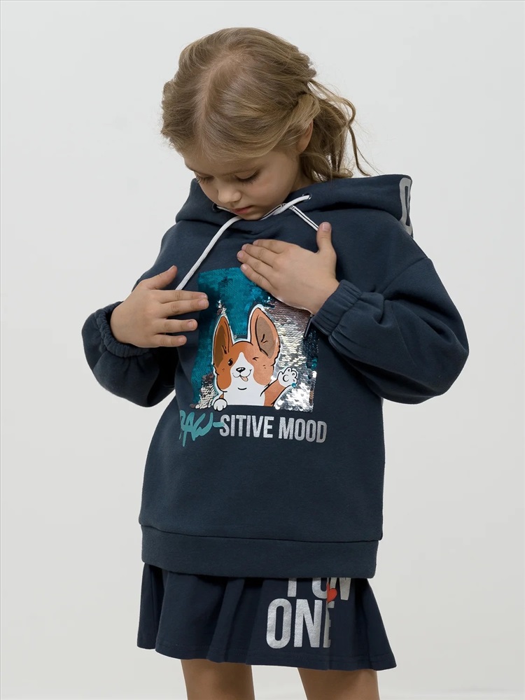 Российский размер: 104 Рост: 104 Возраст: 4 Обхват бедер: 61 Артикул поставщика: GFNK3270 Состав: 60%хлопок 40%полиэстер Сезон: Осень, Весна Год: 2022 Обхват груди: 56 Обхват талии: 51 Худи из футера с начесом. Оригинальный капюшон с запахом, объем регулируется принтованными шнурками с пластиковыми наконечниками. По краю капюшона широкая обтачка с текстовым принтом из серебряного металлика. Перевод Не важно. Центральный принт в виде нашивки из двусторонних пайеток, серебряного и бирюзового металликов. Перевод игра слов PAW лапа и POSITIVE позитивное настроение. Комментарии к товару