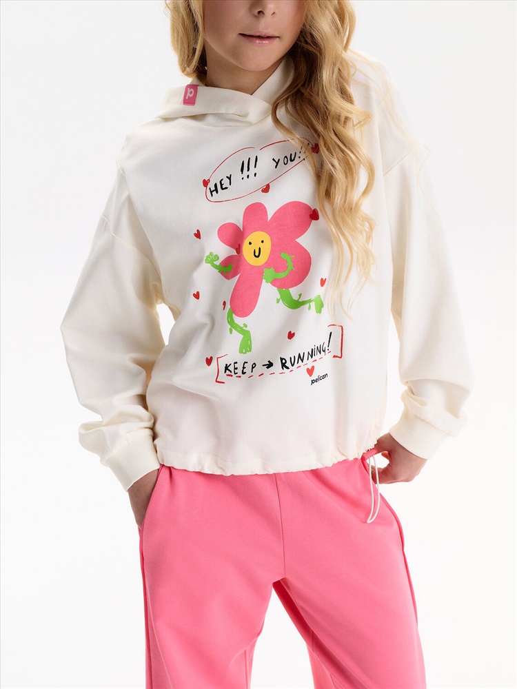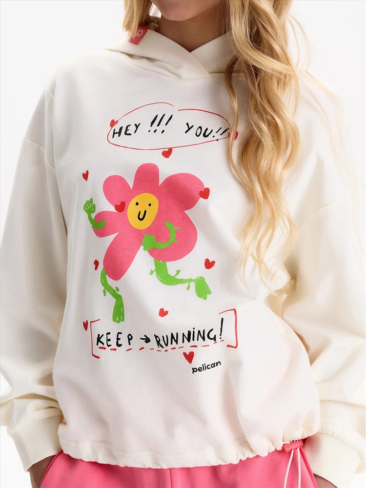 Российский размер: 92 Рост: 92 Возраст: 2 Обхват груди: 52 Обхват талии: 51 Обхват бедер: 55 Артикул поставщика: GFNK3388/1 Состав: 100%хлопок Сезон: Осень, Весна Год: 2026 Толстовка oversize из мягкого хлопкового футера. Плотность 235 гр/кв.м Модель средней длины, свободного объёма по линии груди и низа. Мягкое спущенное плечо создаёт расслабленный силуэт. Контрастная вставка вдоль линии рукава придаёт модели стильный акцент. По низу рукавов — плотная рибана, хорошо держит форму. Внизу изделия — утяжка со шнуром и стоппером, позволяющая регулировать посадку по фигуре. Перевод: эй!! ты!! продолжай бежать! Комментарии к товару