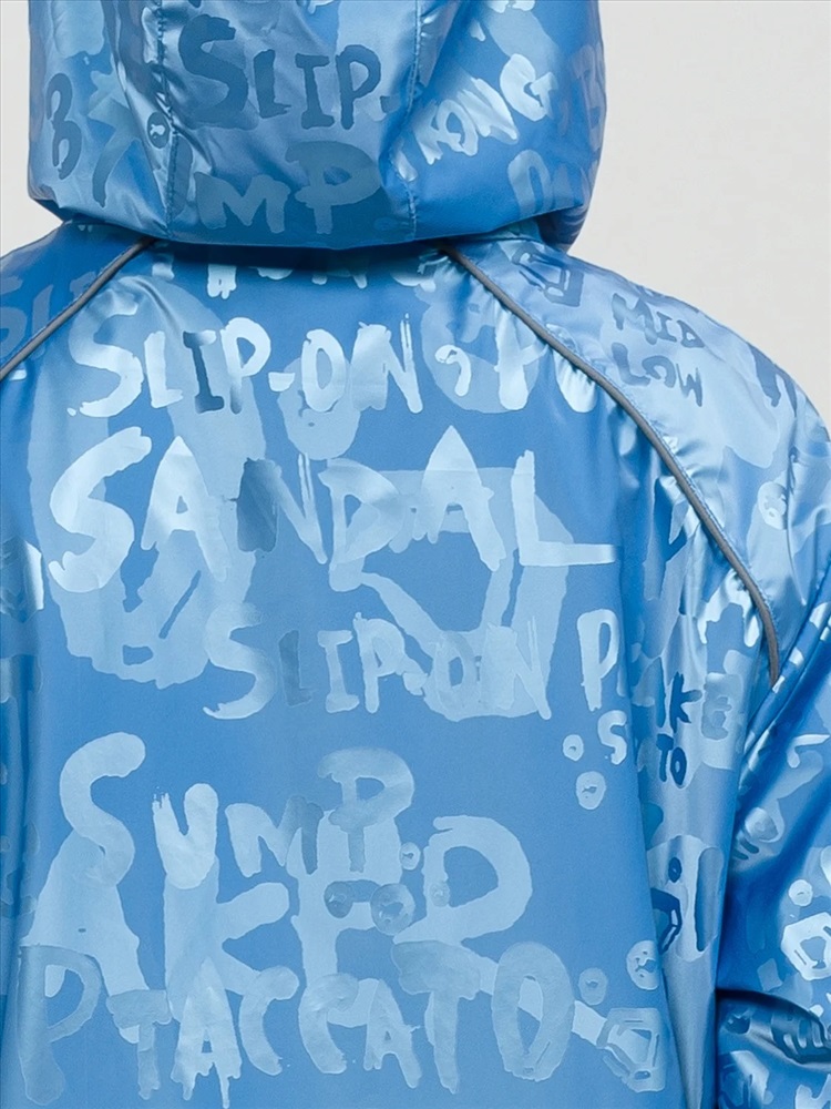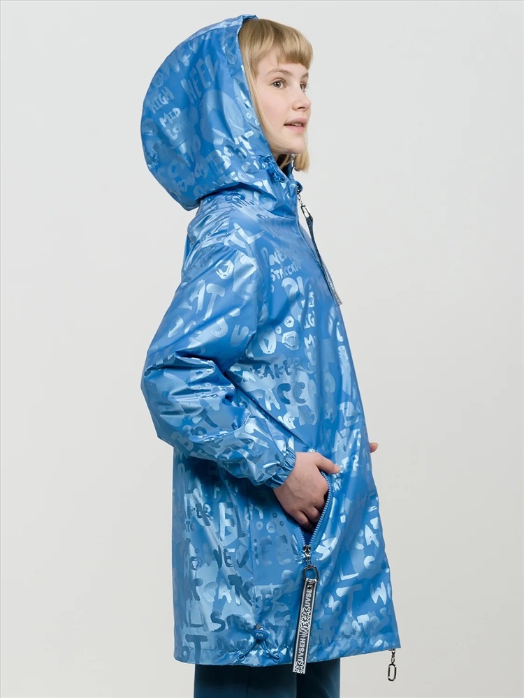 Утепленная ветровка. Рекомендуемый температурный режим не ниже плюс 5 градусов. Синтепон 40 г/м2 в рукавах, подклад из флиса в капюшоне, по стану и на внутреннем воротнике. НОВАЯ шелковисто нежная ткань с покрытием Pongee, голубым металликом и с водоотталкивающим покрытием. Регулировка понизу эластиком со стоппером. Прорезные карманы на тракторной молнии с пуллерами из принтованной репсовой ленты. Световозвращающие элементы на спинке в швах кокетки.