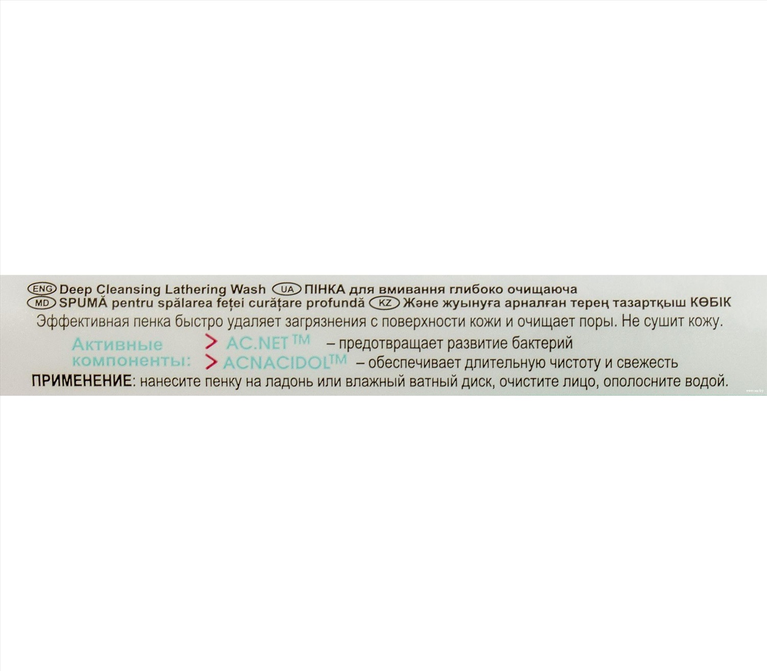 Очищение против прыщей и черных точек. Эффективная пенка обеспечивает качественное очищение: быстро удаляет загрязнения с поверхности кожи и очищает поры. Активные компоненты обеспечивают антибактериальную защиту и длительную чистоту. Не сушит кожу!