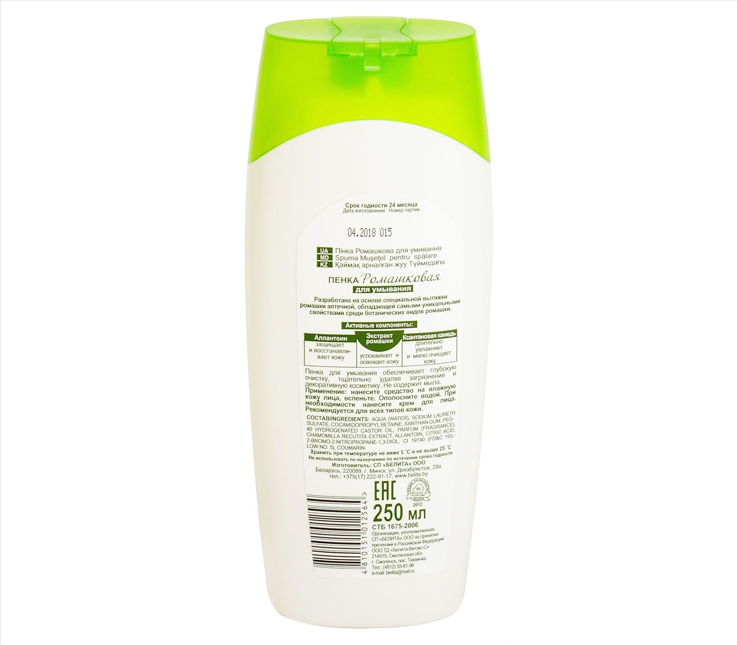 Бренд: Белита; Изготовитель: СП "Белита" ООО, Республика Беларусь, 220089, г. Минск, ул. Декабристов, 29а; Производитель: Белита; Серия: Ромашковая; Тип кожи: Для всех типов; Упаковка: Флакон
