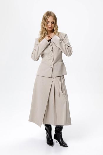 Костюм-двойка из укороченного приталенного жакета с акцентными карманами и асимметричной юбки со складками. Комментарии к товару