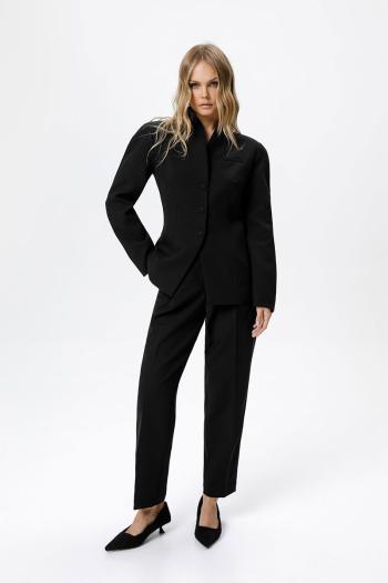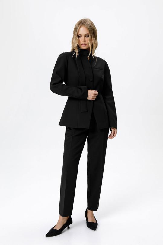 Костюм-двойка из приталенного жакета с акцентными плечами и укороченных классических брюк со стрелками. Комментарии к товару