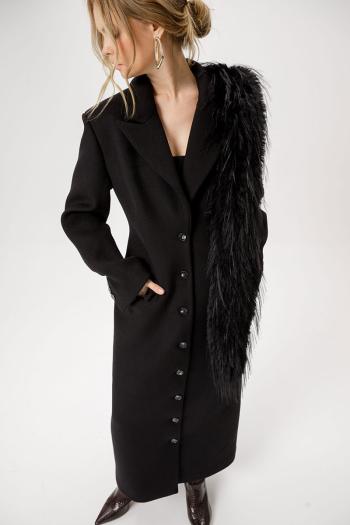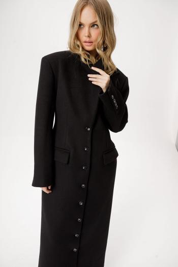 Приталенное шерстянное пальто длины макси. Детали: приталенный силуэт, свободный крой с расширенными плечами, перед с прорезными карманами, талиевые вытачки, воротник пиджачного типа, застёжка центральная на петли и пуговицы, втачные длинные рукава, пальто на подкладке.