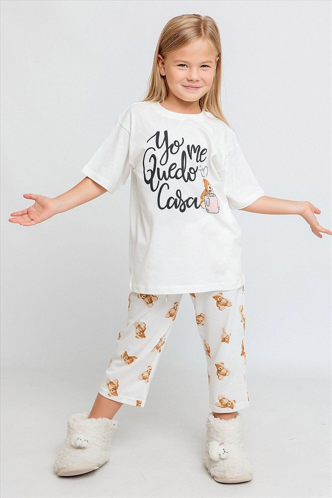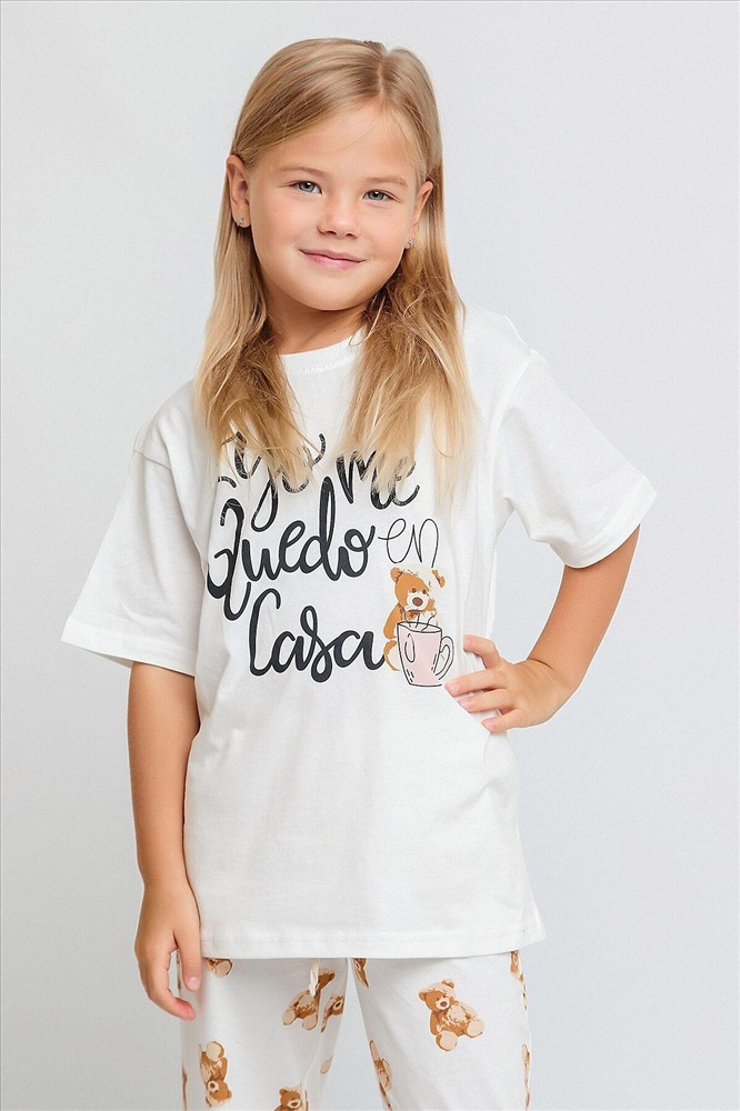 Страна производства: Россия Пижама для девочки трикотажная из супрема: футболка с коротким рукавом и брюки. Детская пижама сшита из 100% натурального гипоаллергенного хлопка. Пижама подойдет для сна дома и в детском саду, а также можно носить как домашний костюм. Белая расцветка и принт в виде мишек.