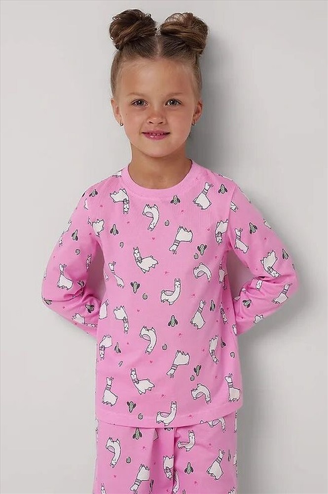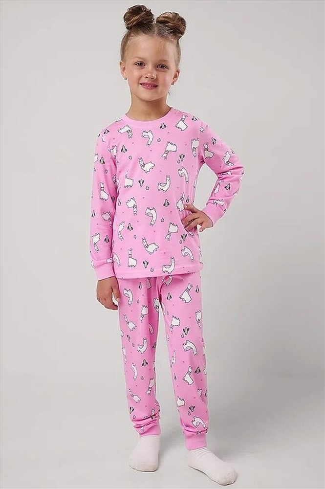 Комплект хлопковой пижамы из джемпера и брюк. Джемпер свободного кроя дополнен эластичной горловиной и манжетами. Брюки среднего объема, эластичный пояс обеспечит комфорт и идеальную посадку. По низу брюк эластичные манжеты. Состав: 100% Хлопок