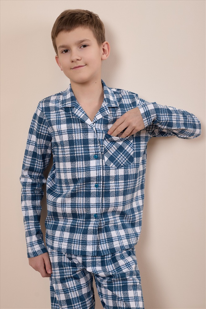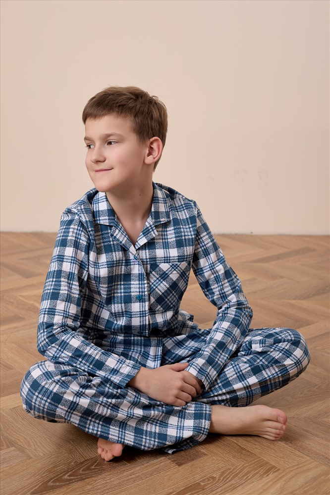 Вид верха комплекта: Рубашка Вид низа комплекта: Брюки Вид ткани: Кулирка Сезон: Всесезонный Состав: Хлопок 100% Цвет Номенклатуры: индиго/белый