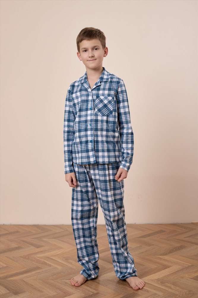Пижама из кулирки набивка состоит из брюк и рубашки с