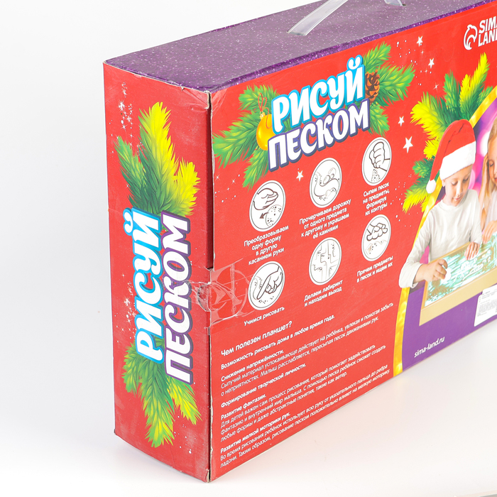 Планшет для рисования песком «Новогодняя сказка» подарит вам не один волшебный вечер в преддверии Нового года. Рисование песком — это не только необычный вид изобразительного искусства, но и эффективный и очень популярный метод арт-терапии.