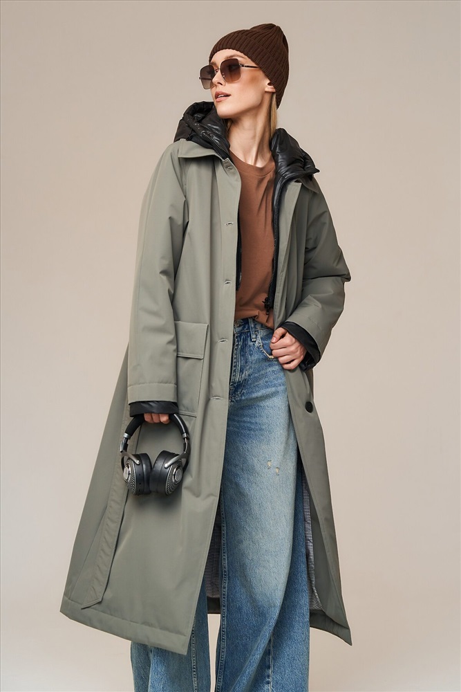 Длина изделия по спинке: 120 см Длина рукава: 66 см Утеплитель: изософт (высокотехнологичный, рулонный утеплитель из микроволокна) Плотность утеплителя: 100 г/м2 Температурный режим: от+5°С д о +15°C Покрой: прямой Тип рукава: реглан Тип карманов: накладные Состав: 100% полиэстер Материал подкладки: 100% полиэстер Размеры: 42-56 Детали: застежка на пуговицы. Пояс из основной ткани. Капюшон: отстежная манишка