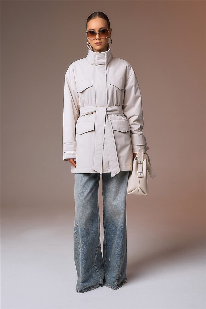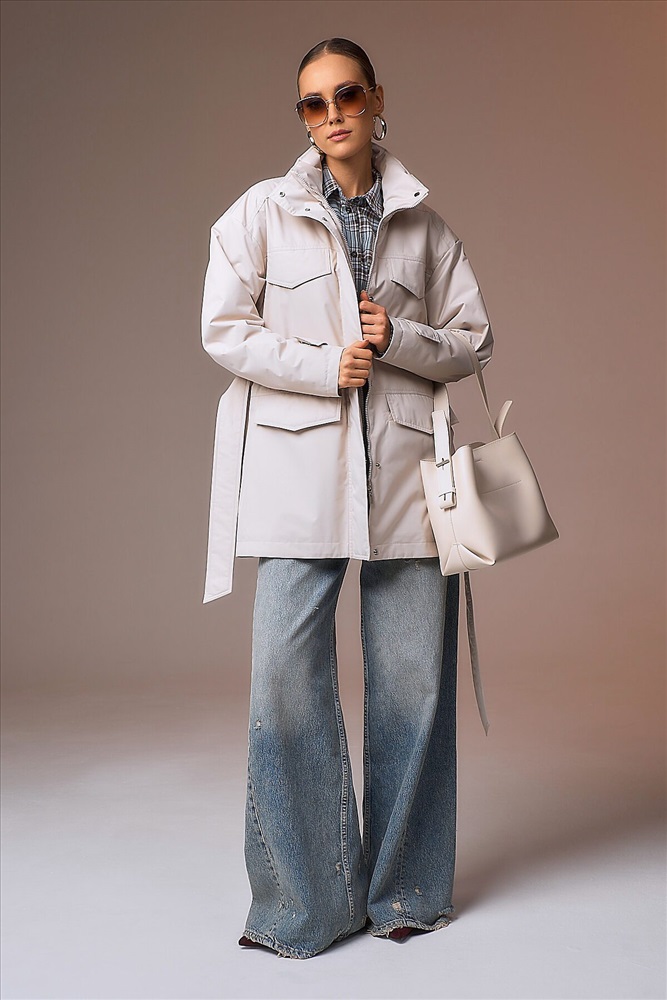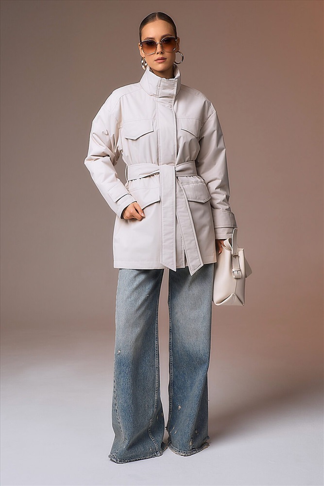 Длина изделия по спинке: 80 см Длина рукава: 66 см Утеплитель: изософт (высокотехнологичный, рулонный утеплитель из микроволокна) Плотность утеплителя: 60 г/м2 Температурный режим: от+10°С до +15°С Покрой: прямой Тип рукава: спущенное плечо Тип карманов: прорезные с клапанами Состав: 100% полиэстер Материал подкладки: 100% полиэстер Размеры: 42-56 Детали: застежка на молнию и потайные кнопки, декоративные паты, в комплекте пояс из основной ткани