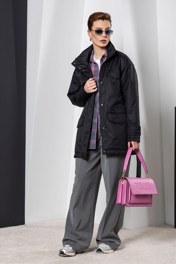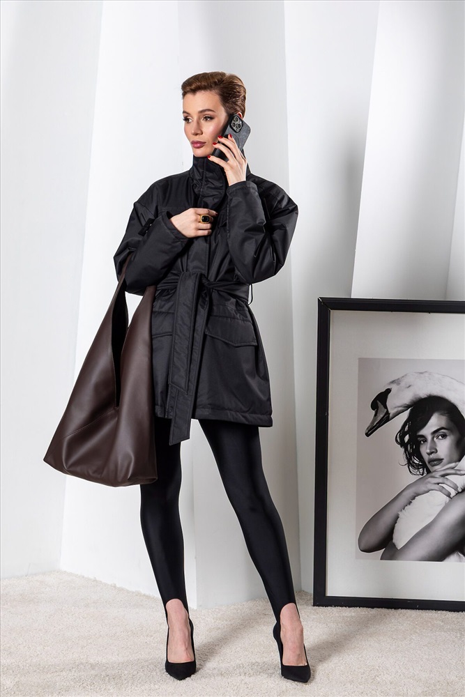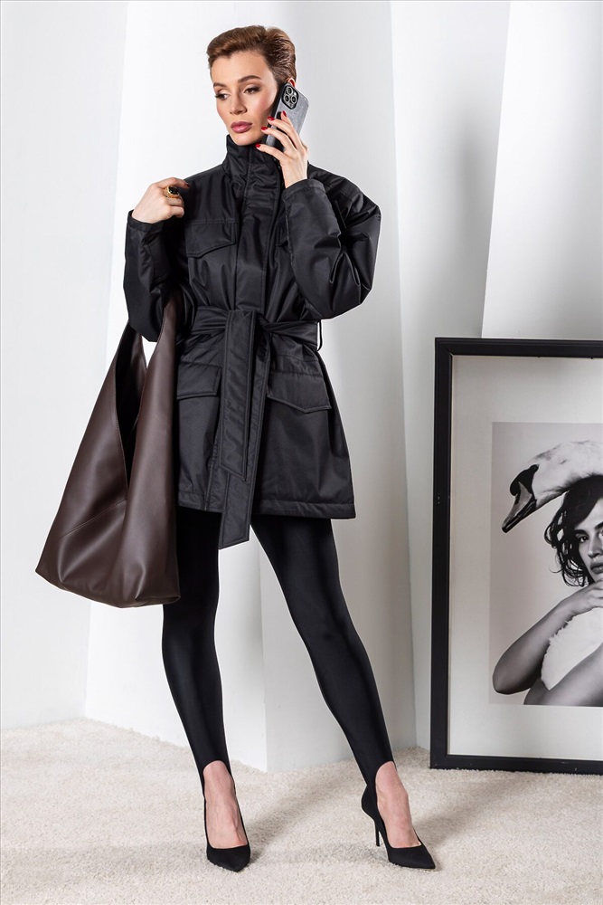 Детали: застежка на молнию и потайные кнопки, декоративные паты, в комплекте пояс из основной ткани