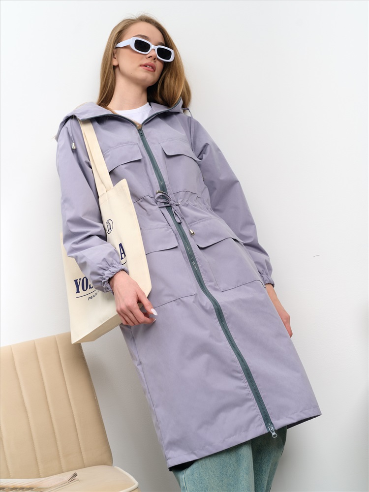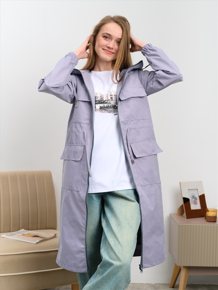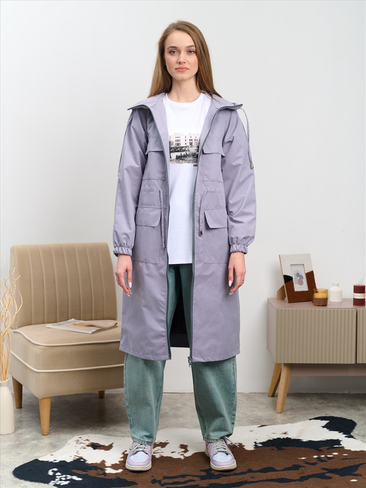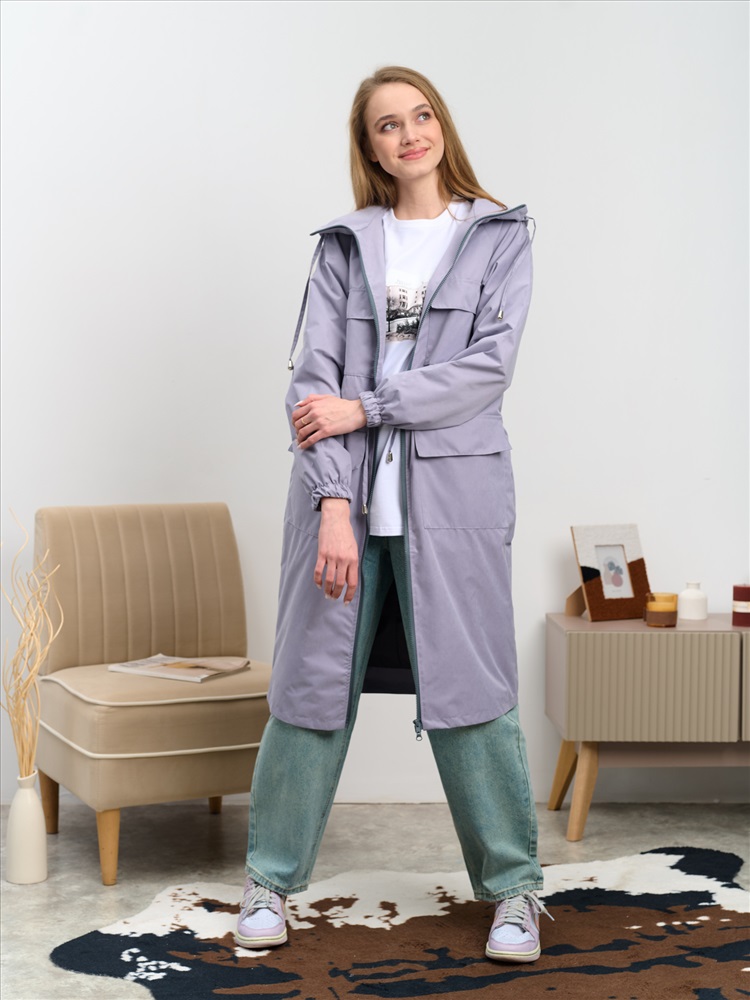 Модель: 469 Страна: РОССИЯ Состав: 100 % полиэстер Пол: Россия Вид изделия: Ветровка Номер тех. регламента: О безопасности легкой промышленности Цвет: сирень Бренд: Yollochka Ветровка-плащ женская в спортивном стиле: - ткань с мембранным покрытием с эффектом пич-скин - модель свободного кроя - удлиненный плащ - утяжка по талии - объемный капюшон с регулировкой - накладные карманы с клапаном