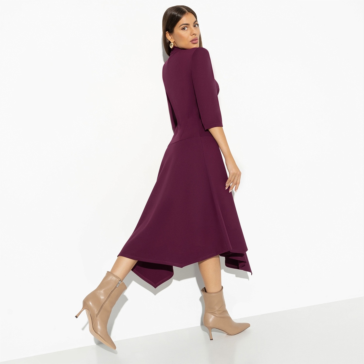 Кэтрин Зета-Джонс, Дженифер Лоуренс и Сальма Хайк давно обожают цвет бургунди. Пришло время перенять звездные привычки. Тем более, глубокий винный переживает новый расцвет. Платье из эластичного трикотажа. Линия талии спущена. Асимметричный крой подола. Воротник-стойка.