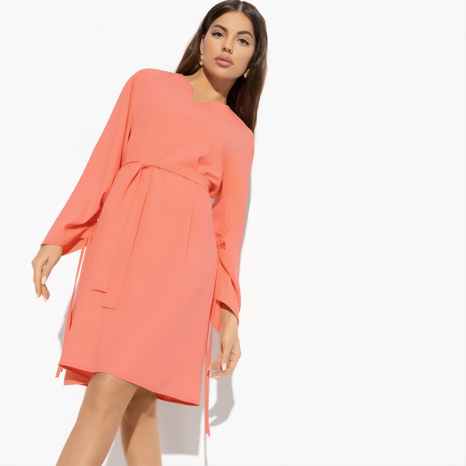 Персиковый цвет сообщает о тепле, даже если за коном другая погода. Главное – праздник в душе. А к нему и наряд соответсвующий – платье CHARUTTI со сборками на рукавах, расслабленный крой и элегантная длина.