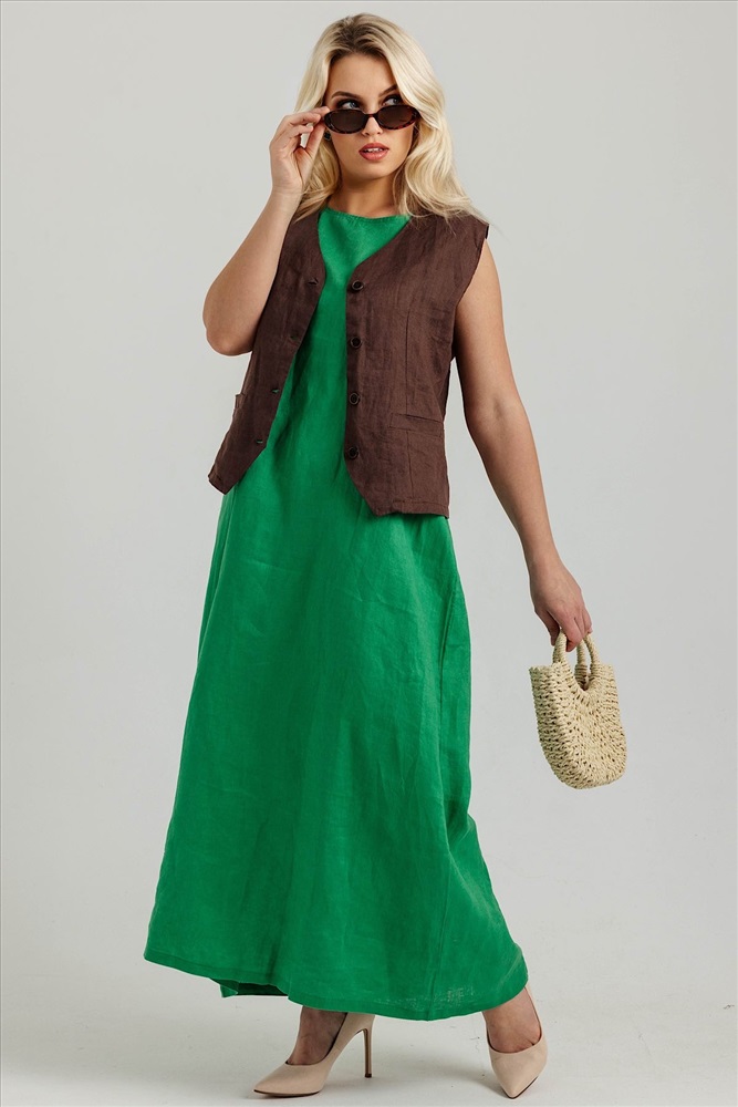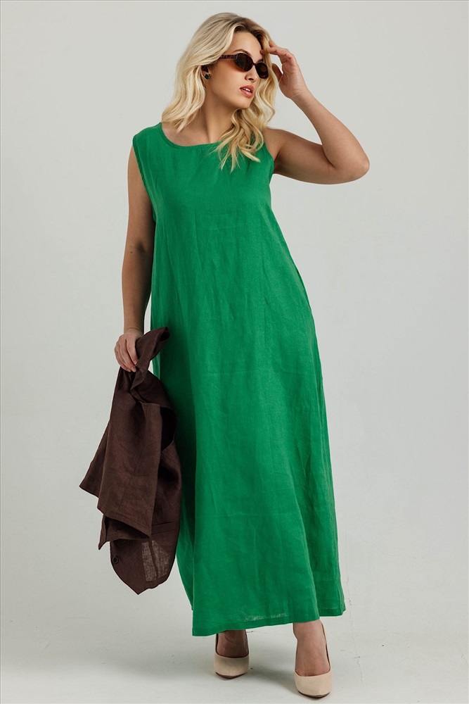 Летнее женское платье с карманами из 100% льна. Женское платье – идеальный выбор для женщин, стремящихся подчеркнуть свою элегантность и стиль в любой ситуации. Это платье прекрасно подходит как для повседневных образов, так и для более торжественных мероприятий: вечеринок, праздников и офисных встреч. Свободный крой не стесняет движений, обеспечивая комфорт на протяжении всего дня.Модель платья- А силуэт, что делает изделие универсальным.