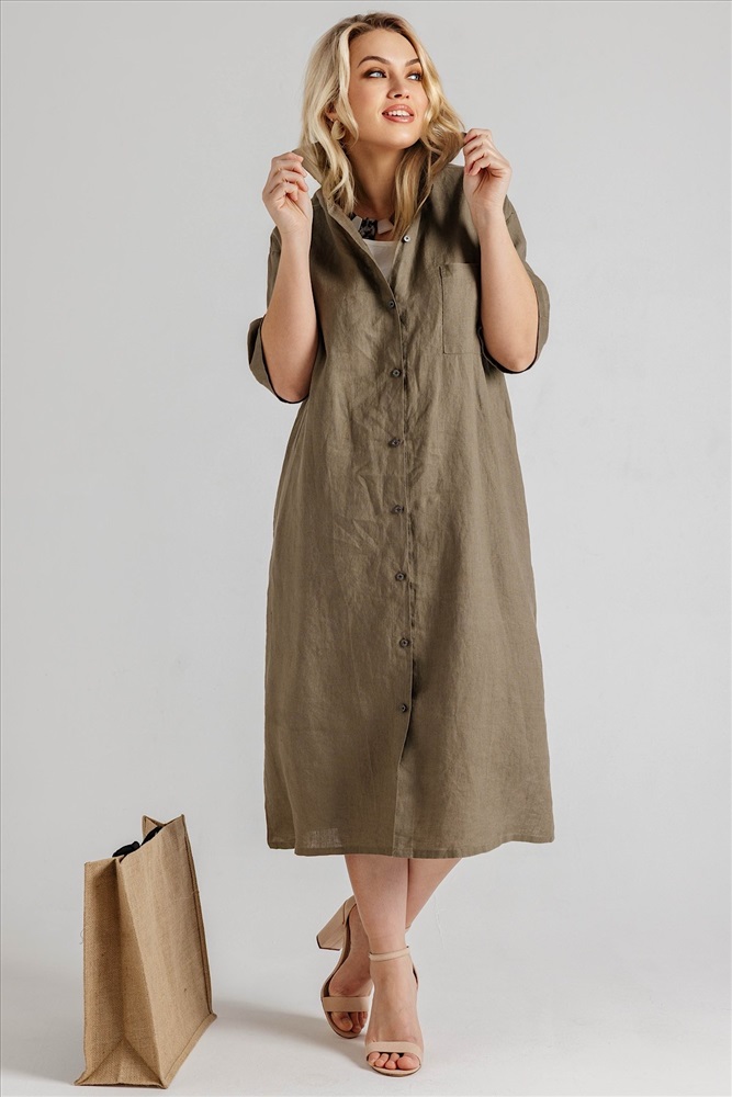Летнее женское платье-рубашка с карманами из 100% льна. Женское платье – идеальный выбор для женщин, стремящихся подчеркнуть свою элегантность и стиль в любой ситуации. Это платье прекрасно подходит как для повседневных образов, так и для более торжественных мероприятий: вечеринок, праздников и офисных встреч. Свободный крой не стесняет движений, обеспечивая комфорт на протяжении всего дня.Модель платья- А силуэт, что делает изделие универсальным.