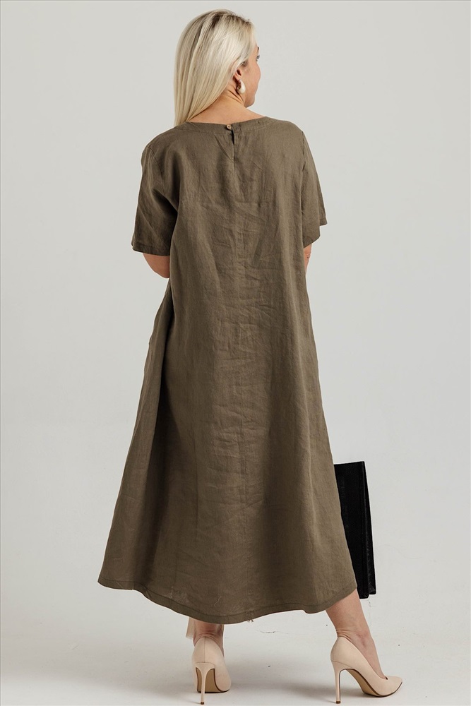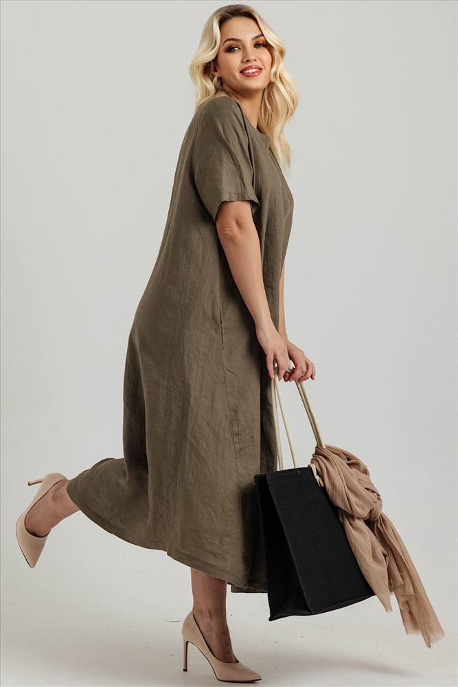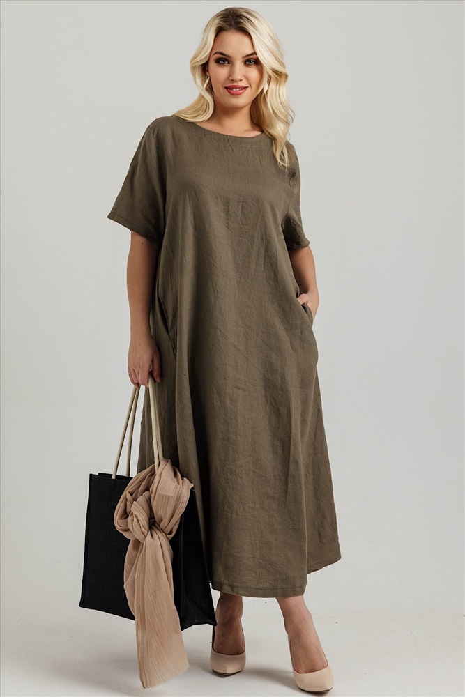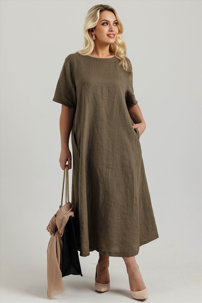 Состав: лен 100% Летнее женское платье  с карманами из 100% льна. Женское платье   – идеальный выбор для  женщин, стремящихся подчеркнуть свою элегантность и стиль в любой ситуации. Это платье прекрасно подходит как для повседневных образов, так и для более торжественных мероприятий: вечеринок, праздников и офисных встреч. Свободный крой не стесняет движений, обеспечивая комфорт на протяжении всего дня.Модель платья- А силуэт, что делает изделие универсальным.