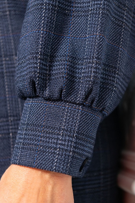 описаниеПлатье полуприлегающего силуэта со шлицей по ноге. Круглый вырез. Длинный рукав на широкой манжете с пуговицами. По спинке потайная молния и шлица.