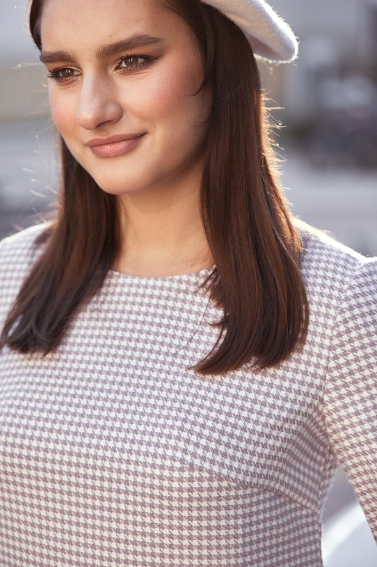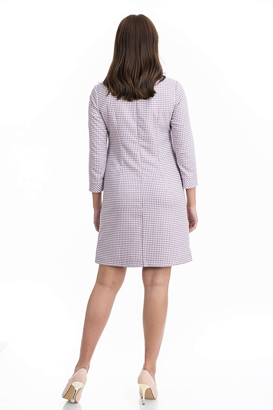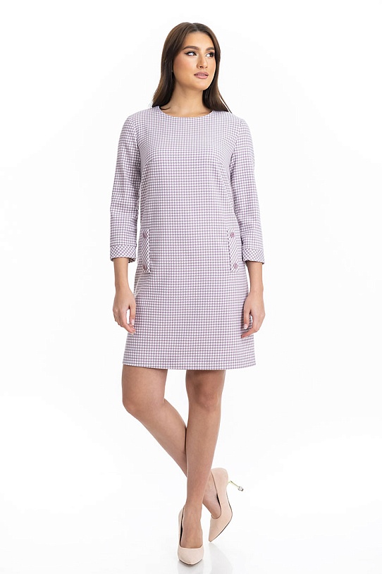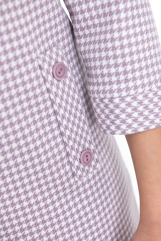 описаниеУкороченное платье силуэта трапеция. На полочке декоративные листочки с пуговицами. Круглый вырез. Рукава 3/4 заканчиваются манжетом. По спинке потайная молния.