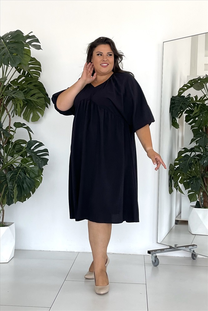 Цвет: Черный Фасон: Платье Материал: Лен Длина рукава: 3/4 рукав Параметры модели: Рост 168 см, Размер 54 Параметр- Материал: Лен Параметр- Цвет: Черный Параметр- Параметры модели: Рост 168 см, Размер 54 Параметр- Длина рукава: 3/4 рукав Платье жатое v-вырез со сборкой под грудью черное Стильное платье из мягкого материала. Модель имеет по переду и спинке V-образный вырез, который по спинке оформлен оригинальными завязками. Широкие цельнокроеные рукава длиной 3/4 по низу оформлены узкими резинками. Фигурная завышенная линия талии искусно обыгрывает область живота и бедер, маскируя небольшие недостатки фигуры. Центральный шов по спинке обеспечивает оптимальную посадку по фигуре. Платье создано для того, чтобы подчеркивать достоинства. Стильный клатч и туфли на каблуках станут идеальным дополнением к нарядному образу.