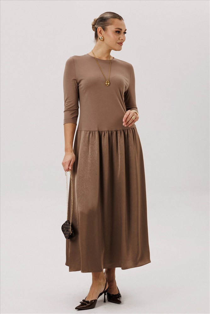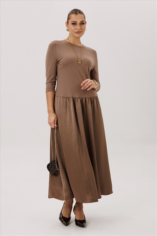 В этом платье Вы будете чувствовать себя очень лёгкой и воздушной. Ветер играет с волосами, а невесомое платье нежным шёлком скользит по ногам. Пришло время дышать полной грудью! Свободный силуэт, втачной покрой, круглая горловина с эффектной каплей на спине. Верх платья - из мягкого хлопкового трикотажа, низ - из крешованого атласа. Длина платья около 130 см. верх: вискоза 75%, пэ 25%, низ: пэ 100%. Комментарии к товару