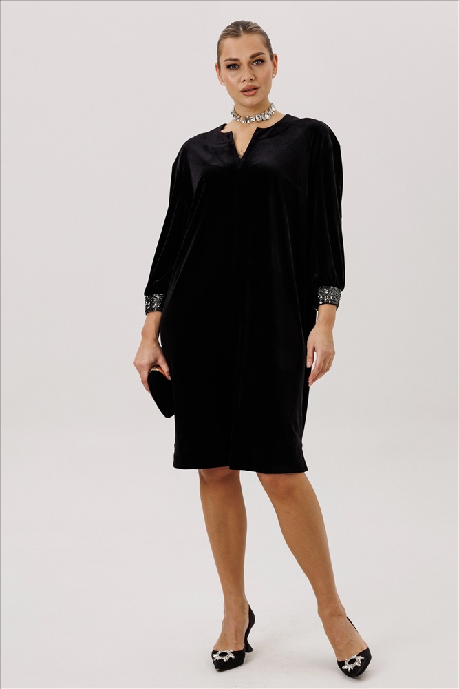 Платье остаётся неизменным символом женственности и элегантности, являясь ключевым элементом гардероба. Акцент - на многофункциональность! Это и самостоятельный наряд, и в дополнении с другими элементами одежды (жакеты) - гармоничный образ от вечернего выхода до повседневного. Свободный упрямлённый силуэт, втачной рукав, круглая горловина с акцентным треугольным вырезом. Спинка с центральным швом. Рукав 3/4 с акцентной деталью из пайеток. пэ 100%. Комментарии к товару
