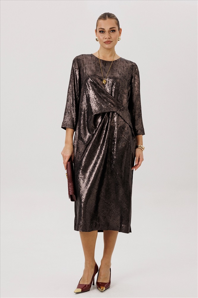 Очарование и красота девушки любого возраста засияют еще ярче, если выбрать для нарядного образа изысканное вечернее платье. Женственный силуэт, подчеркивающий линию талии, и невероятная фактура с эффектом "крэш" и красивое блестящее напыление делают эту модель не только изысканно-красивой, но и мега удобной. Свободный упрямленный покрой, втачной рукав. Полочка со сложной драпировкой-складкой, имитирующий пояс. Спинка со средним швом. пэ 100%. Комментарии к товару