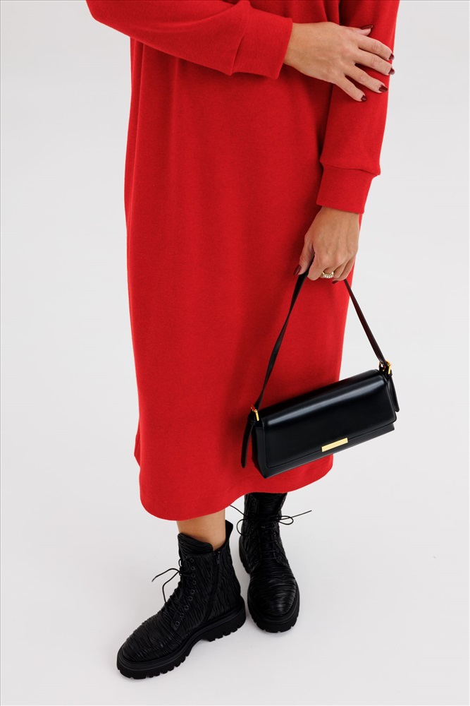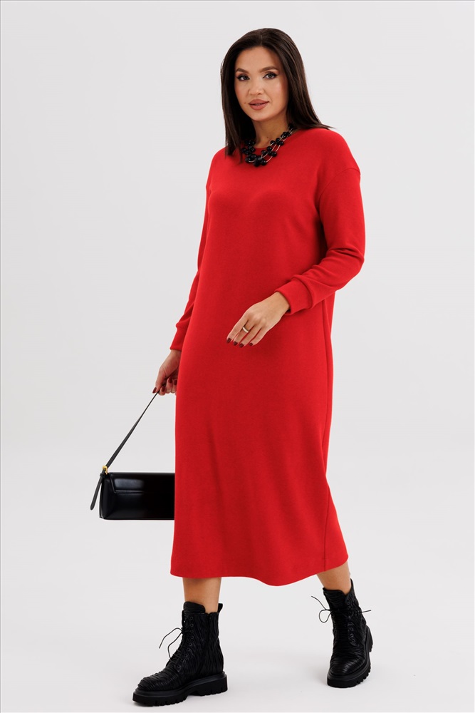 Красное платье миди из трикотажного полотна без разреза — стильный выбор для уверенных в себе женщин, ценящих комфорт и элегантность. Модель выполнена из мягкого эластичного трикотажа, который идеально садится по фигуре и подчёркивает силуэт, не ограничивая движения. Платье имеет прямой крой, длину миди (до середины икры) и закрытый подол без разреза, что делает образ сдержанным и утончённым. Благодаря лаконичному дизайну, платье легко впишется как в повседневный, так и в деловой гардероб. Мягкая фактура ткани приятна к телу и подходит для любого сезона. Насыщенный красный цвет подчёркивает женственность и уверенность, а минималистичный стиль позволяет комбинировать платье с различными аксессуарами и обувью — от классических туфель до ботильонов. Ключевые преимущества: Модный прямой силуэт без разреза Удобная длина миди Эластичное трикотажное полотно высокого качества Универсальный дизайн — на работу, прогулку, свидание или вечерний выход Вискоза 75%, ПЭ 25% Комментарии к товару