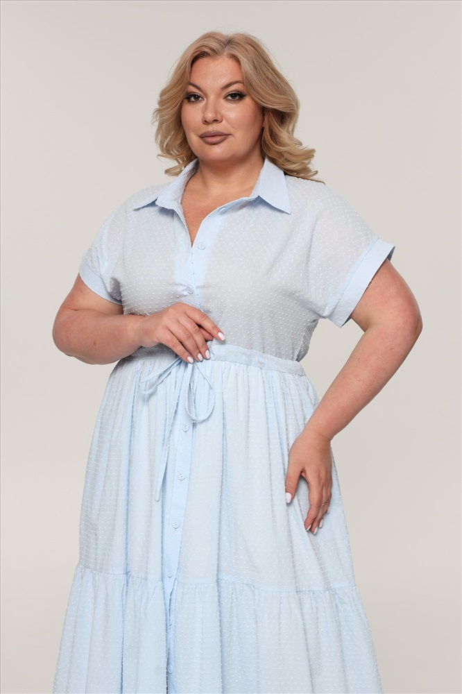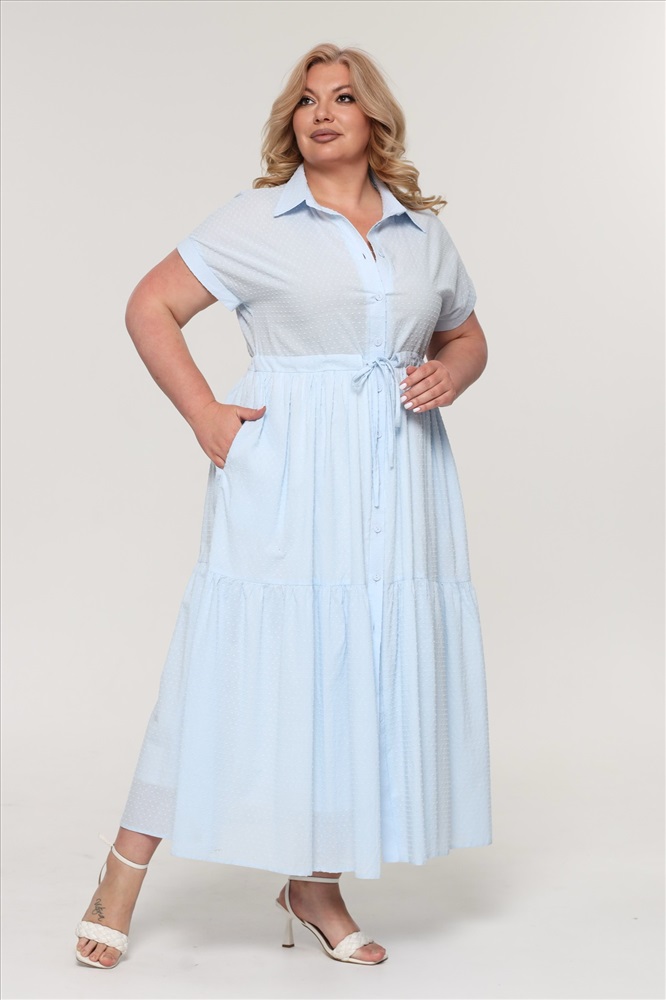 Фасон: Платье Длина платья: Французская длина Материал: Хлопок Длина рукава: Короткий рукав Параметры модели: Рост 173 см, Размер 54 Платье-рубашка "ярусы" с завязкой на талии голубое Оригинальное платье полуприлегающего кроя из мягкого материала с крэш эффектом на подкладке - идеальный вариант для женщин, ценящих простоту и элегантность. Модель имеет классический отложной воротник и короткие цельнокроеные рукава с планкой по низу. Платье застегивается по всей длине на пуговицы под планку. Вытачки на груди способствуют оптимальной посадке по фигуре. Кулиской по талии можно регулировать объём платья. Многоярусная расклешенная юбка искусно обыгрывает область бедер и добавляет женственности. Полуприлегающий силуэт не сковывает движений и искусно обыгрывает фигуру, маскируя мелкие недостатки. Для завершения стильного образа можно использовать как туфли на высоких каблуках, так и спортивную обувь.