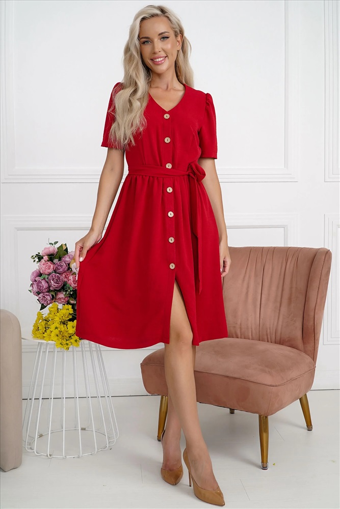 Вид застежки: Пуговица Вид пояса: Съемный Состав, %: 65 % вискоза 35% полиэстер Это красивое яркое платье красного цвета — идеальный выбор для смелых и уверенных в себе женщин! Его насыщенный оттенок привлекает внимание и создает эффектный образ, который не останется незамеченным. Комментарии к товару