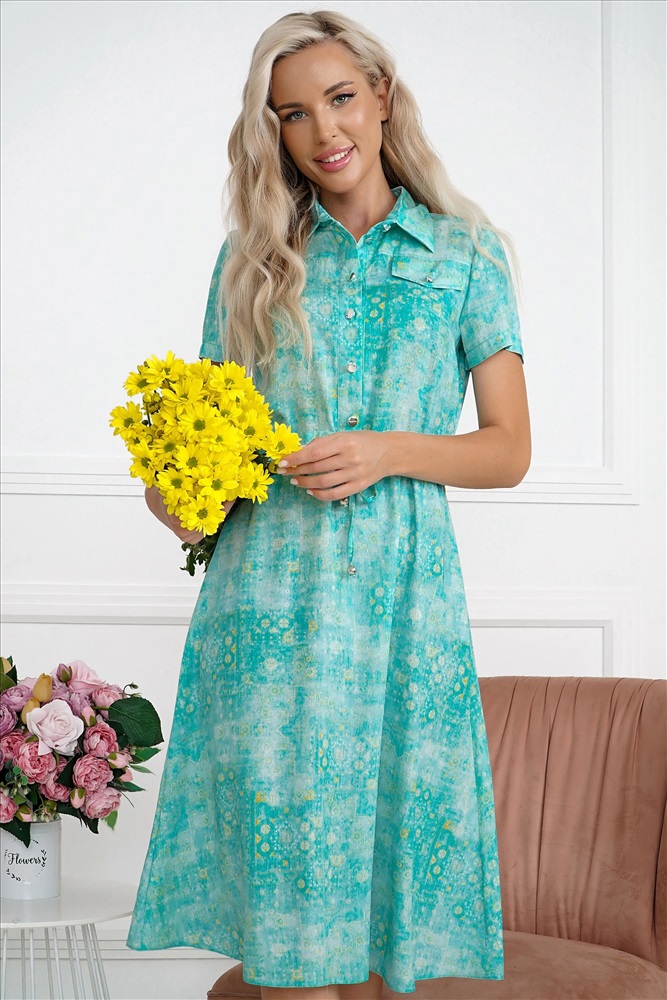 Уход за вещами: ручная стирка Вид застежки: Пуговица Вид пояса: кулиска Состав, %: 100% вискоза Вырез горловины: рубашечный Красивое платье из текстильного полотна, премиального качества. Комментарии к товару