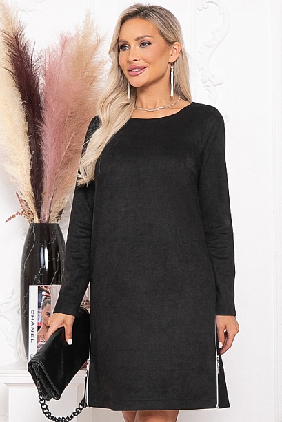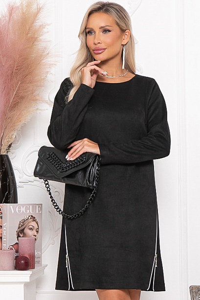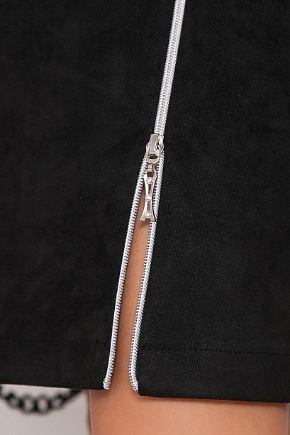 Платье А-образного силуэта из экозамши.Изюминка платья красивые, серебристые молнии,которые позволяют регулировать разрезы. 30% вискоза,65% п/э,5% лайкра Комментарии к товару