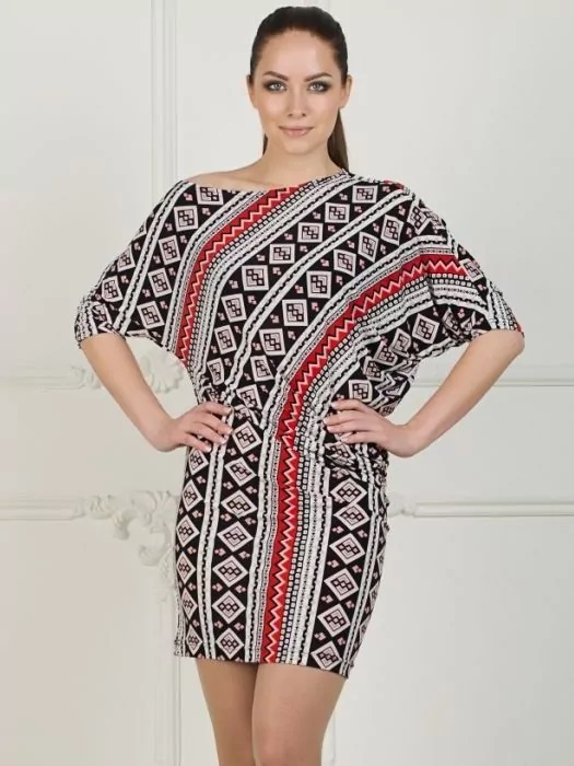 Красивое платье из тонкого трикотажного полотна с вырезом "лодочка" асимметричного кроя.