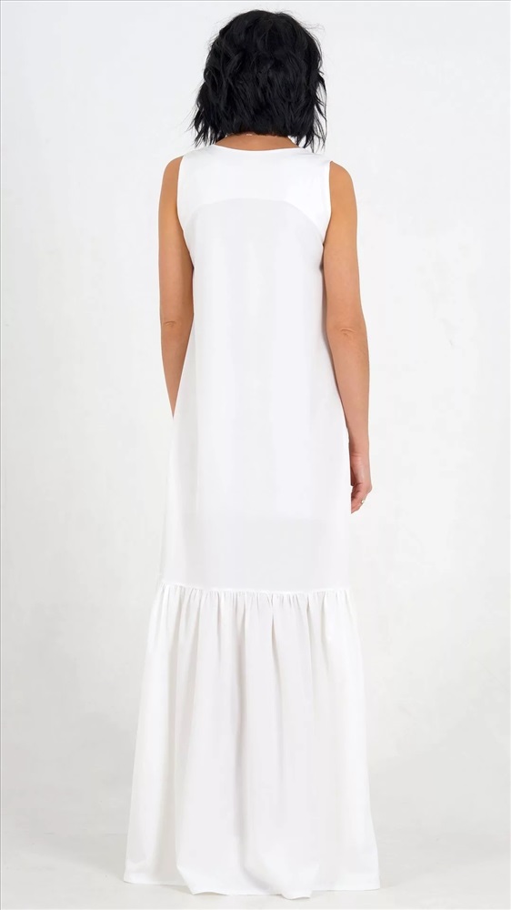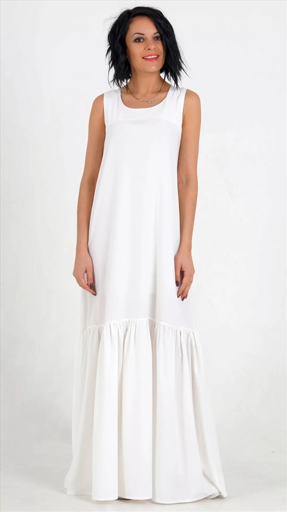Материал: Плательная ткань Тип: Повседневная Сезон: Круглый год Цвет модели: Белый Страна производства: Россия Длинное платье. Вырез горловины круглый. Без рукава. Не отрезное по талии. Внизу волан. Без застёжки. Без подклада, не просвечивает. ДИ в 42-44 р 150 см., в 46-48 р 151 см., в 50-52 р 152 см., в 54 р 153 см Рост модели 164 см. , платье 42 размера Комментарии к товару