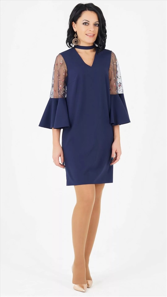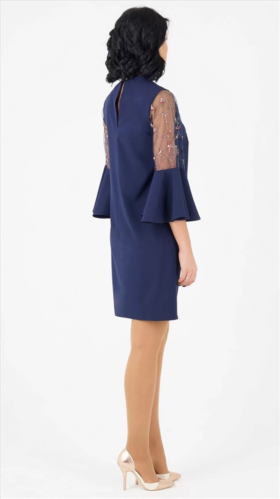Рукав втачной, из сетки с вышивкой и волана из основной ткани, длина 45 см.