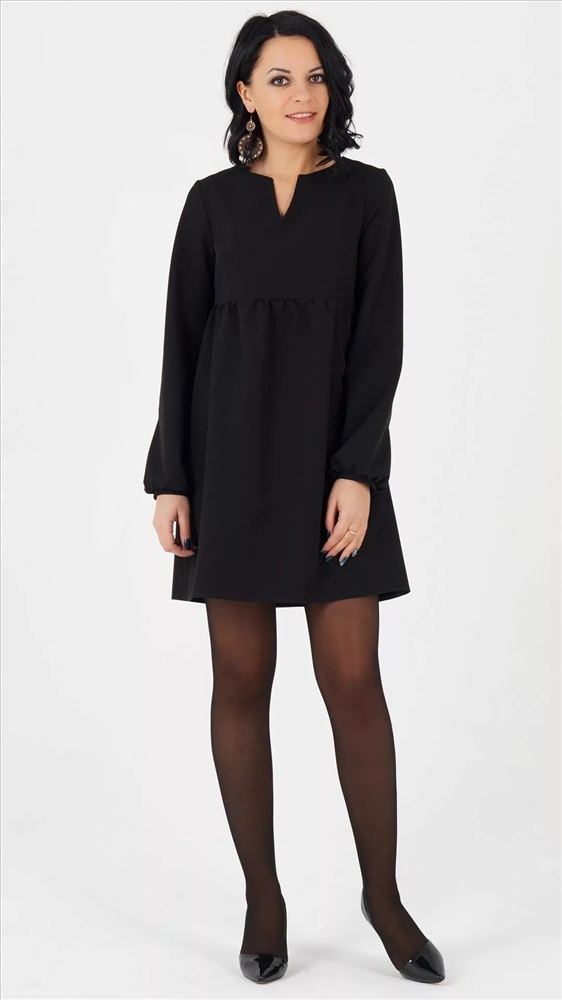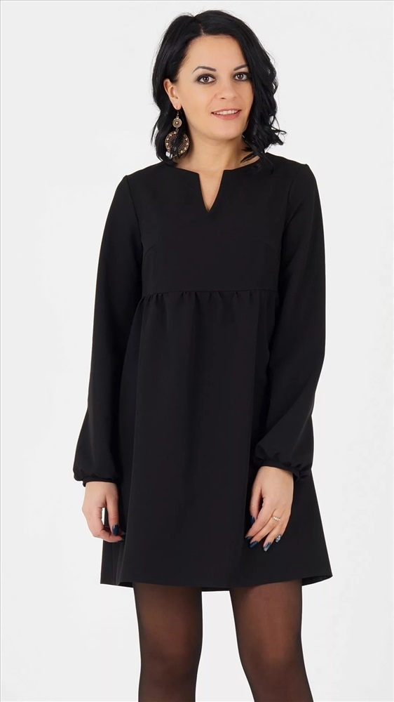 Материал: Плательная ткань Тип: Повседневная Сезон: Круглый год Цвет модели: Черный Страна производства: Россия Свободное платье А-силуэта. Фигурный вырез горловины. Длинный рукав 61 см. на манжете. Без карманов. Без застёжки. Без подклада. ДИ в 42-44 р 81 см., в 46-48 р 87 см, в 50-54 р 93 см. Рост модели 164 см. , платье 42 размера Комментарии к товару