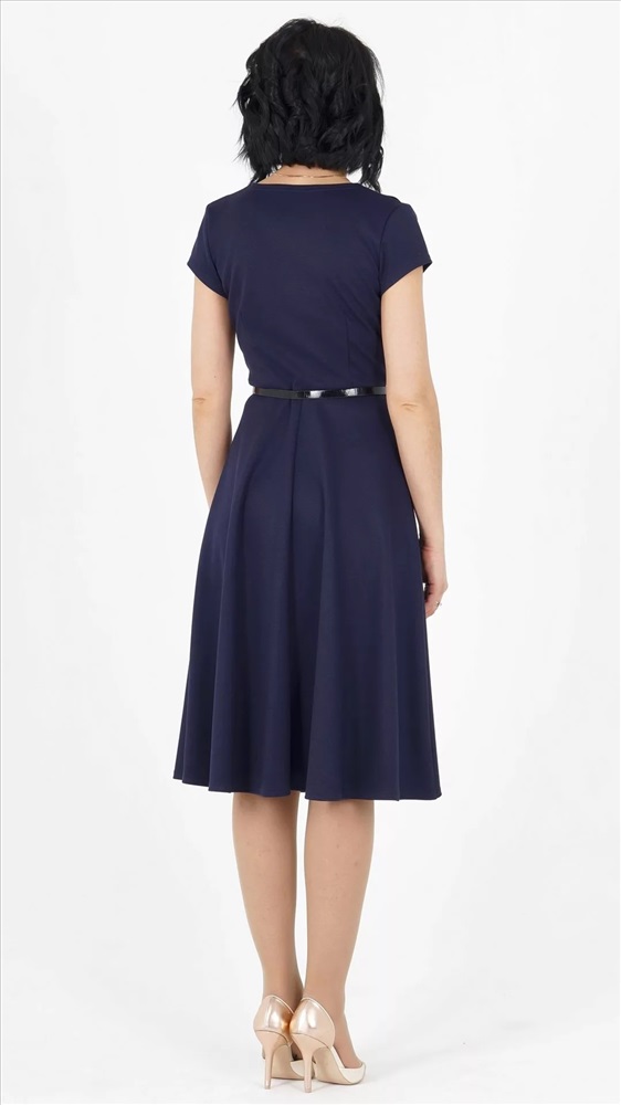Материал: Трикотаж плотный Тип: Повседневная Сезон: Круглый год Цвет модели: Темно-синий Страна производства: Россия Элегантное офисное платье. Выполнено из плотного трикотажного полотна. Расцветка тёмно-синий. С отложным воротником. Рукава короткие 10 см. Отрезное по талии. Прекрасно подойдет для офиса и для повседневной носки. Без подклада. Без застёжки. ДИ в 42-44 р. 102 см., в 46-48 р 103 см, в 50-54 р. 107 см. Ремень в комплект не входит. Рост модели 164 см, 42 размера. Комментарии к товару